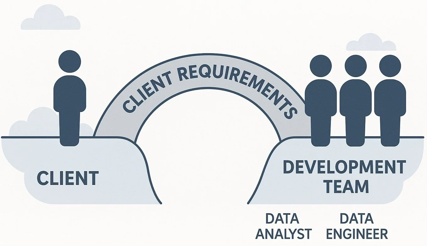 Business requirements serve as the bridge between you (the development team) and the client, ensuring alignment between the end product (e.g., a dashboard, a visual, a report) and their goals.