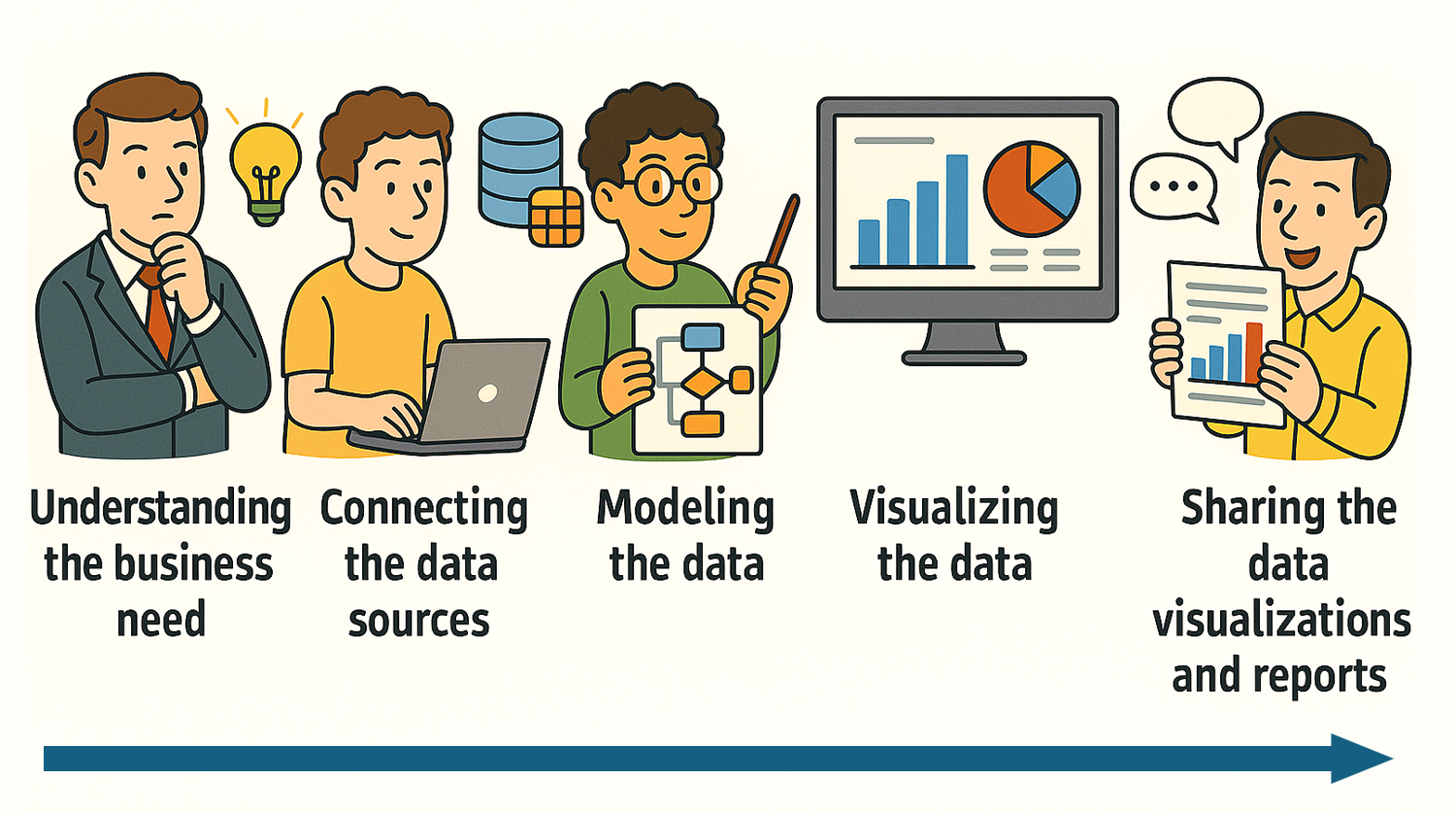 Through executing a structured approach to define the business need and succinctly summarizing the results, you will acquire a deeper understanding of the business requirements, gaining clarity that can inform every other step: data source selection, data model design, data visualization and sharing methods. This will ensure your final product is not only technically sound, but valuable and impactful.